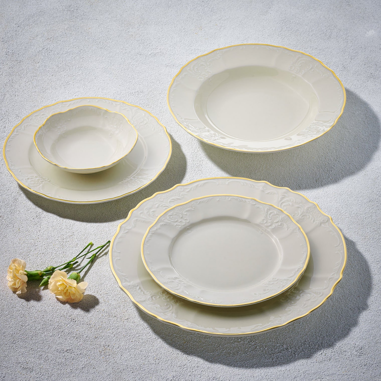 - Bernadotte, 20 Pc Dinnerware Set, Ivory with Gold Rim